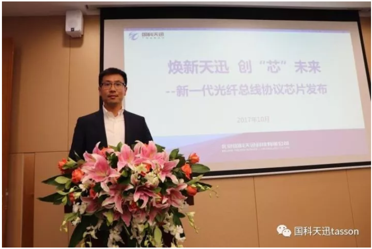 国科在线买世界杯平台-世界杯(中国)市场部经理徐俊亭为大家讲解并发布国内高可靠光纤通信领域的首款总线协议芯片产品。
