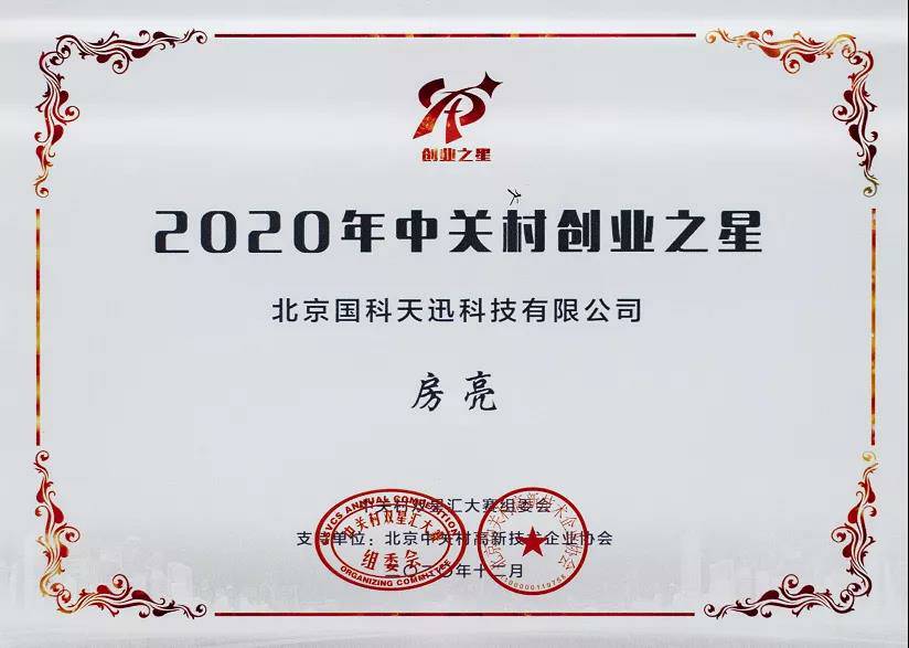 12月21日,在北京市科委、中关村管委会、中关村科学城管委会的指导与支持下,由北京中关村高新技术企业协会主办的2020中关村“双星汇—创业之星”榜单隆重发布。经严格的数据核实及分析、评委会审议、大数据舆情调查等程序,国科在线买世界杯平台-世界杯(中国)创始人房亮从众多杰出创业者中脱颖而出,荣获“2020年中关村创业之星”荣誉称号。